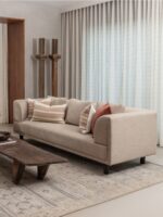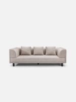 The MORSTONE Sofa by Luxury Furns is a bold and sculptural three-seater, designed for those who appreciate minimalist strength and long-lasting comfort. Crafted with a unified form that wraps its armrests smoothly into the backrest, this sofa makes a confident statement in any modern interior. Upholstered in a rich beige cotton-blend fabric, it stands on robust teakwood legs finished in matte black, bringing both contrast and character. With an acacia wood frame at its core, this piece delivers dependable structure and timeless sophistication.