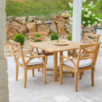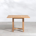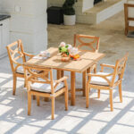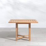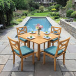 The Veranda 43 in. square teak dining table blends graceful curves with durable materials, offering classic outdoor elegance and space for four.