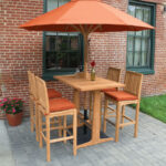 The Veranda 50.5″ bar table combines sustainable Grade A teak or black granite with a sleek pedestal design. Ideal for contemporary outdoor spaces, this table seats 4 and features an umbrella hole for added comfort.