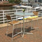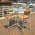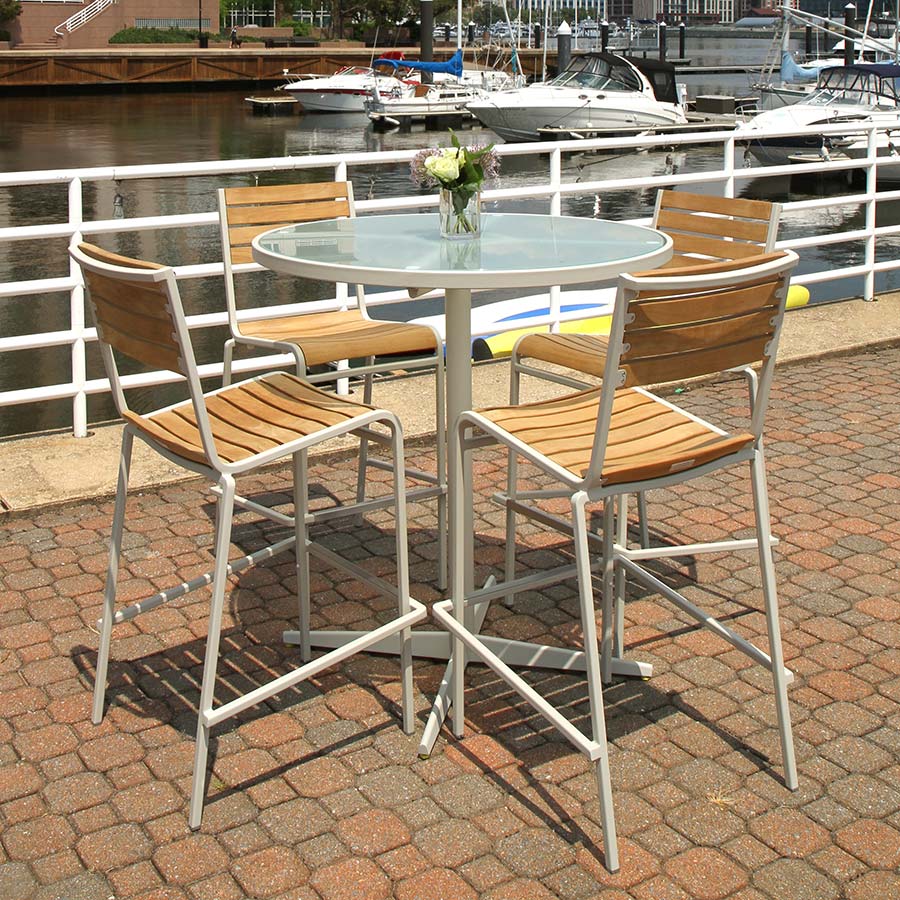 Rivian 36 Square Outdoor Bar Table ? Teak & Steel High Top for 2 to 4