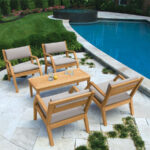 The Wexley 48″ teak coffee table offers classic charm and durable performance in any outdoor space. Crafted from solid Grade A teak, it’s ideally suited for use with 5 or 6 ft. benches or larger lounge arrangements.